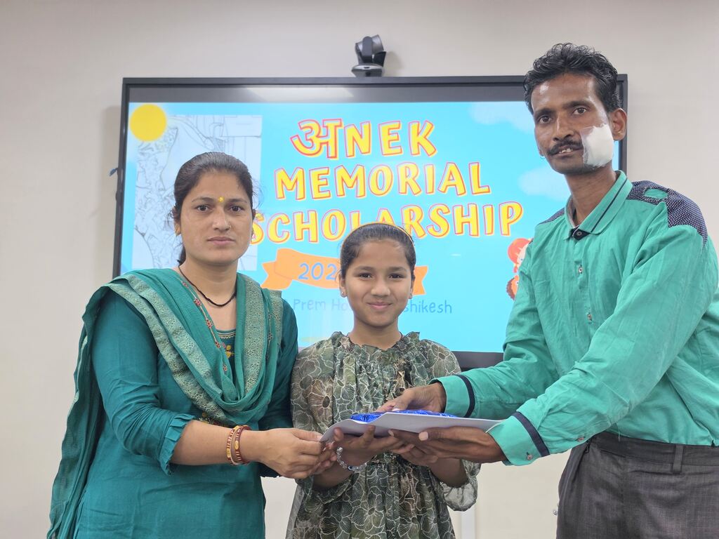 The scholarship was launched in memory of a 12-year-old patient of Ganga Prem Hospice – Anek, who passed away in 2025. Three deserving children were chosen for the scholarship, with carries a total award money of Rs 25,000 per year. These three children, whoare aged nine, ten, and ten respectively, are reading in class IV and Vth in schools in Rishikesh and Raiwala areas.